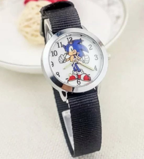 Een super leuk jongens horloge met sonic afbeelding en zwart nulon bandje.