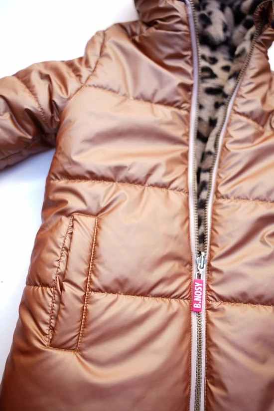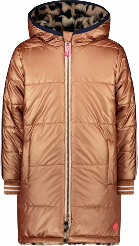 Deze reversible jas van B.Nosy geeft je 2 verschillende looks. Zo kan heb je een hele mooie camel metallic jas de ene dag aan en de volgende dag show je iedereen een toffe luipaard print in een zachte fake fur materiaal. Hoe cool is dat?!
