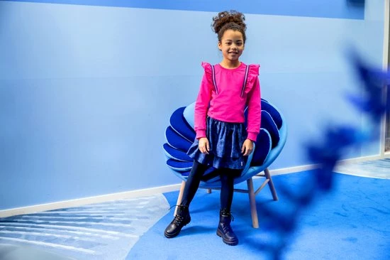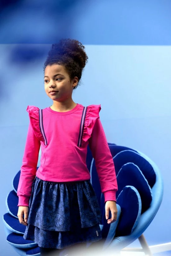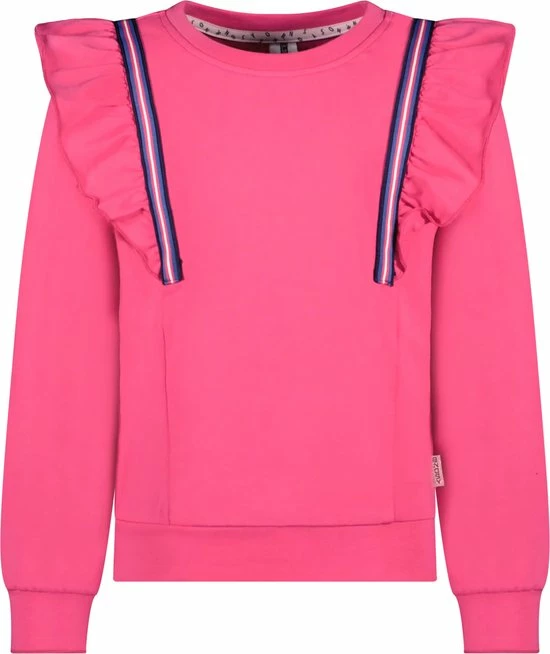 Dit item is een mega favoriet uit de B. The Greatest collectie van B. Nosy! Een mooie roze sweater met toffe ruffles, afgewerkt met een kleurrijke tape op de borst.