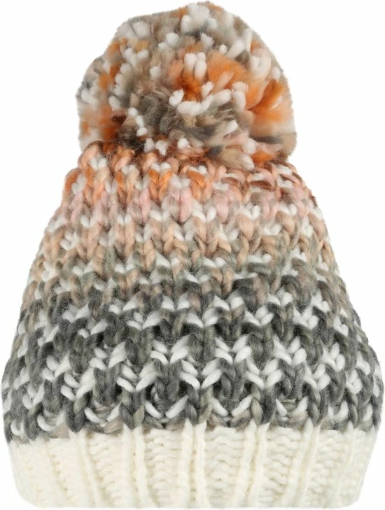 De Nicole is een kleurrijke beanie met pom. De beanie is met fleece gevoerd, voorzien van een ribgebreidboord en afgewerkt met klein leren merkembleem.