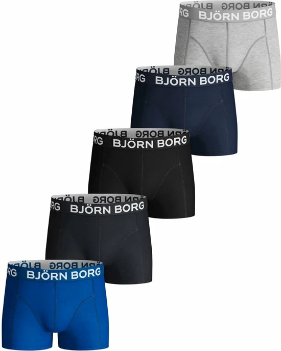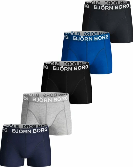Deze set van vijf Björn Borg Solid Boys Shorts is uitgevoerd in zachte katoenjersey met stretch. Dit model kenmerkt zich door een halfhoge taille en halflange pijpen, en is afgewerkt met een zachte 3 cm brede elastische logotailleband van microvezelstof voor extra comfort.