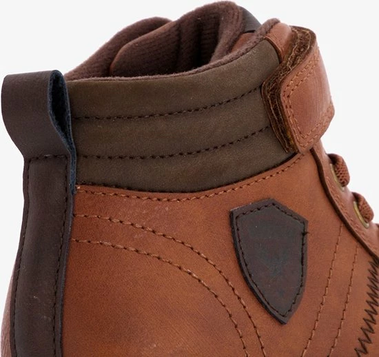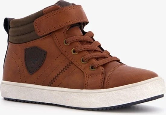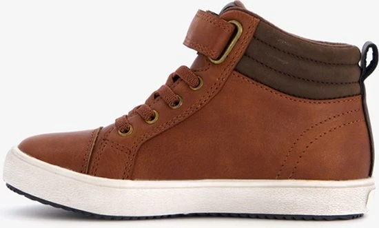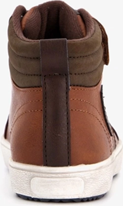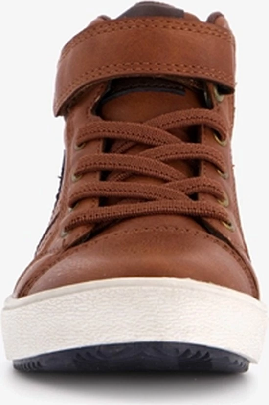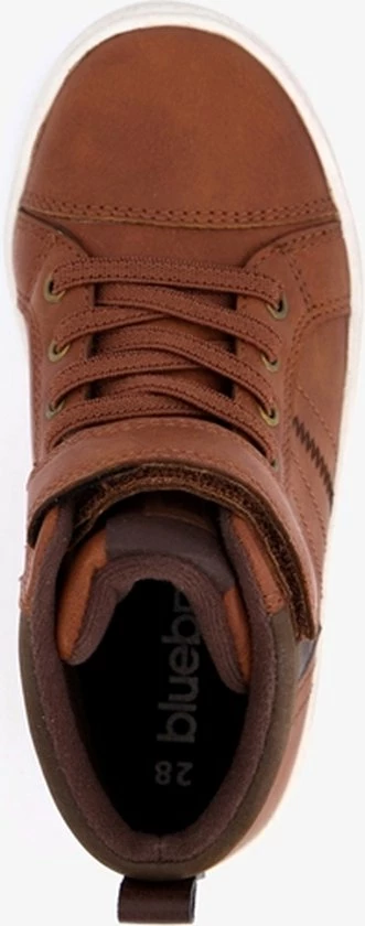 Hoge, cognackleurige sneakers van Blue Box. Gemaakt van imitatieleer, een binnenwerk van leer en een stevige zool. De sneakers hebben elastische veters met klittenbandsluiting voor een makkelijke instap. Het comfortabele voetbed is gemaakt van textiel. Deze is niet uitneembaar. De hoge sneakers van Blue Box hebben een donkerbruin accent bij de instap en op de zijkant van het buitenwerk en zijn voorzien van een opdruk aan de buitenzijde.