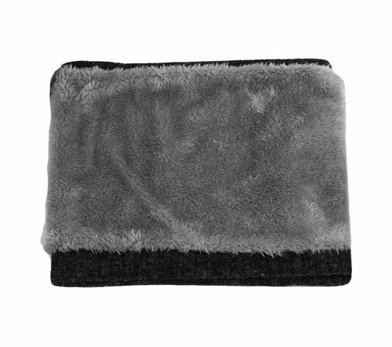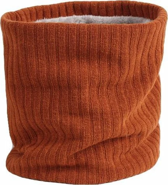 Deze dunne colsjaal heeft een gestreept rib patroon en zachte binnenvoering van teddy. De hoogte is 21 cm, gemaakt van zacht acryl & polyester.