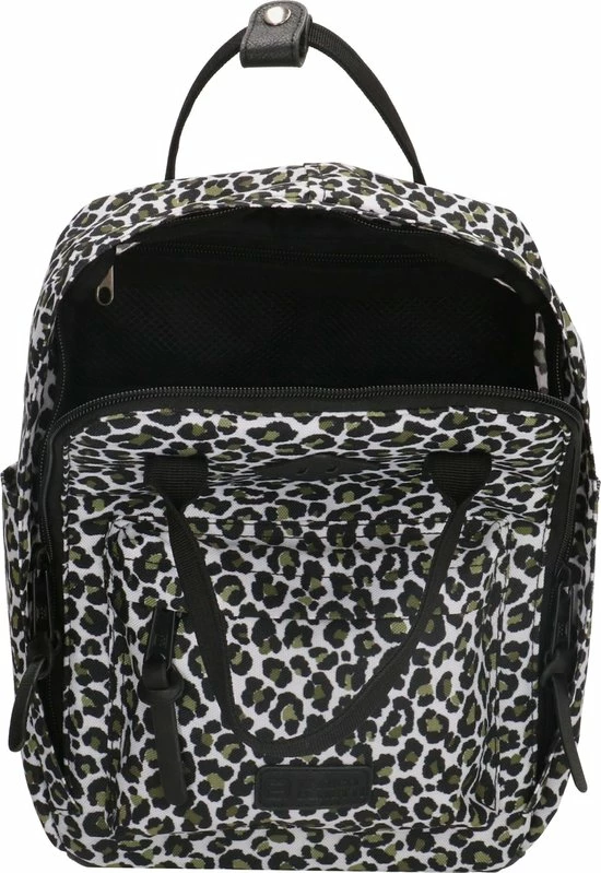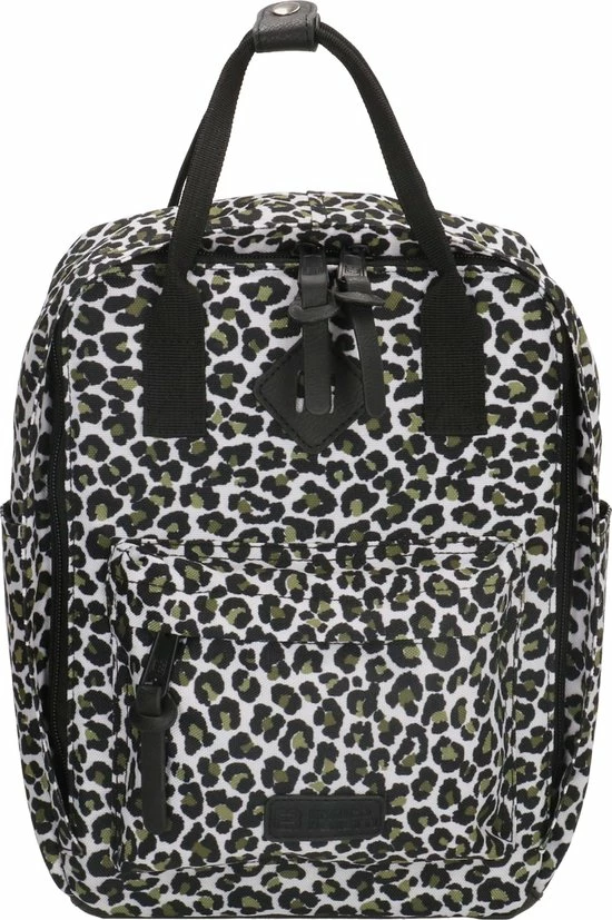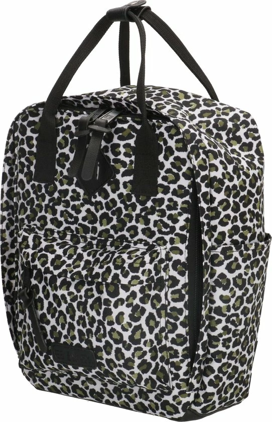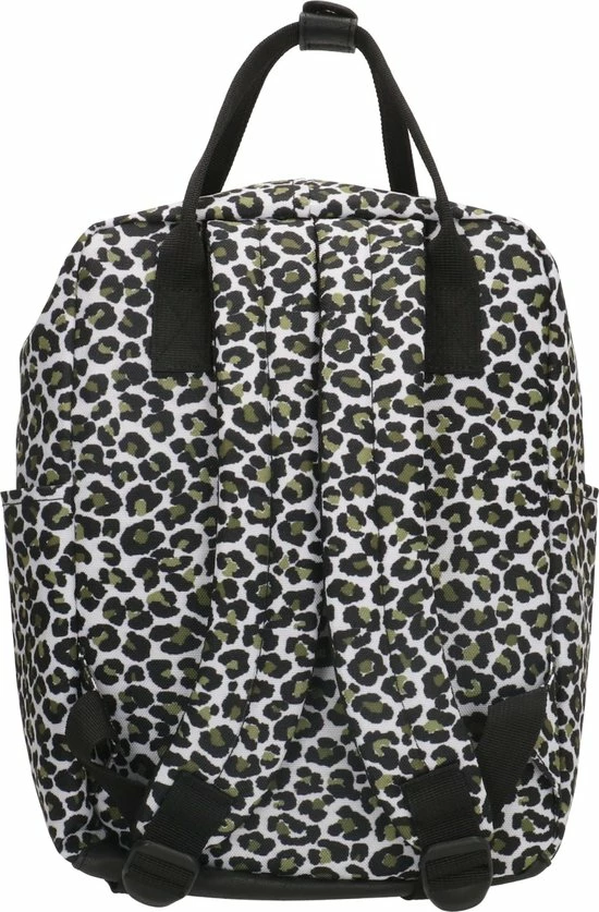 Klein maar toch opvallend leuk, is dit rugzakje uit de serie Londen van Enrico Benetti. De beestachtige goede oljfgren panter print en het moderne model maakt het tasje helemaal hip! De rugtas heeft een hoofdvak met tabletvak en apart ritsvakje. In het voorvak berg je kleine spulletjes op en de tas heeft aan beide zijden ook nog steekvakken. De tas is gemaakt van stevig polyester en afgewerkt met leuke zwarte kunstleren details. Enrico Benetti heeft binnen de Londen serie verschillende soorten en maten rugzakken beschikbaar in allerlei dierenprints!