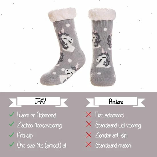 Op zoek naar de meest stijlvolle en comfortabele huissokken? Zoek dan niet verder. Deze fleece gevoerde winter sokken van JAXY bevatten een zacht wolkachtig donzig materiaal die ervoor zorgen dat je voeten en tenen warm blijven op koude momenten. De zachte fleecevoering is super zacht en houden niet alleen je voeten warm, maar laten je voeten ook ademen en voorkomen daarmee zweetvoeten.