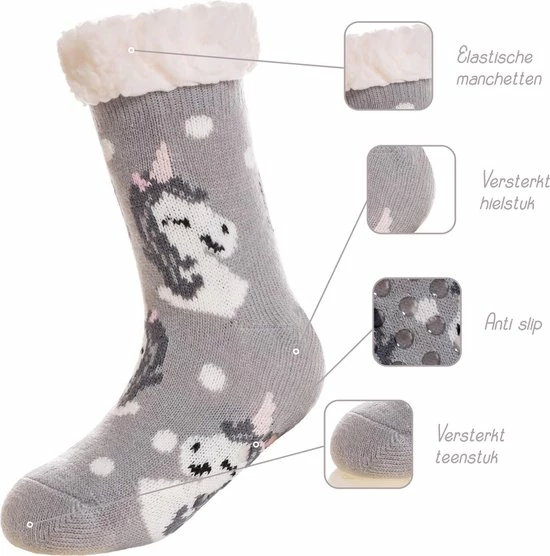 De siliconen grepen op de sokkenzolen voorkomen uitglijden en het vallen op gladde vloeren. Goede sokken voor jong en oud om vallen te voorkomen en tegelijkertijd er stijlvol en comfortabel uit zien.
