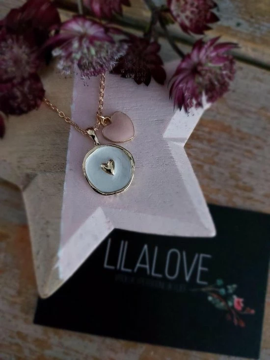 Stijlvol in alle eenvoud, naturel kleuren. Deze cute ketting, met elegante pendant en poederroze hartje, maakt elke meisjes outfit af! De rustige tinten zorgen voor een tijdloos effect en daarom draagbaar voor alle leeftijden. De ketting is 40 cm lang (verstelbaar tot 45 cm).