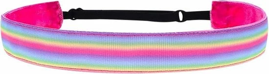 Hoe leuk is deze haarband, jij bent een echte diva met deze regenboog haarband! Doe je haar los of vast en schuif de haarband over je hoofd. De band is verstelbaar en heeft een afmeting van 48 x 2,5 cm en is gemaakt van polyester.