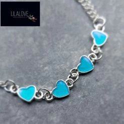 Kopen ๐งจ Armband Meisje- Hartjes- Glow In The Dark- Zilver Blauw- Kadootje- Kind- LiLaLove ๐