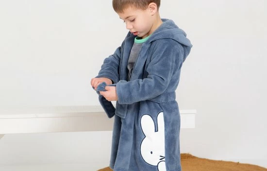 Een lieve badjas van Nijntje. De badjas heeft een mooie blauwe kleur en een appliquΓ© van het schattige konijn nijntje. In een heerlijk zachte stof. Houdt je kindje lekker warm na het badderen. Met capuchon.