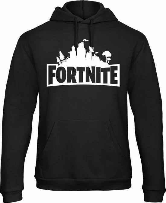 mooie zwarte hoodie(trui met muts) met het bekende Fortnite logo in het wit