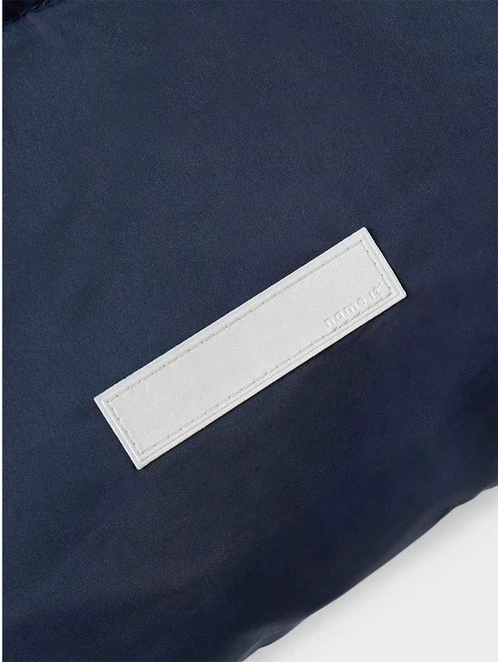 Puffer jas van name it. De gevoerde jas heeft twee zakken aan de voorkant en één aan de mouw. De jas heeft een rits- en drukknoopsluiting. De puffer is voorzien van een reflecterend detail aan de achterkant en een afneembare capuchon.