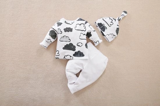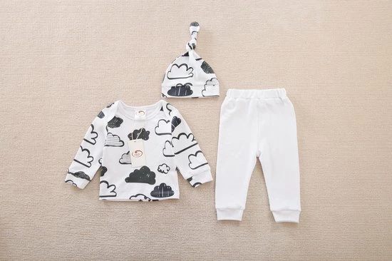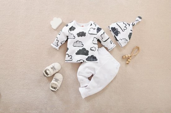 3-delige set van Nezr is gemaakt van 95% katoen en 5% elastaan. Niet alleen superzacht voor je kindje, maar ook super schattig. De set met wolken print maakt de outfit helemaal af. Voorzien van handige drukknoopjes zodat je het gemakkelijk over het lichaam krijgt. Met dit setje kun jij, maar ook je partner, met een gerust hart jullie kleintje aankleden. Goed gestyled en voorzien van al het comfort om het jou en je kleintje net wat makkelijker te maken.