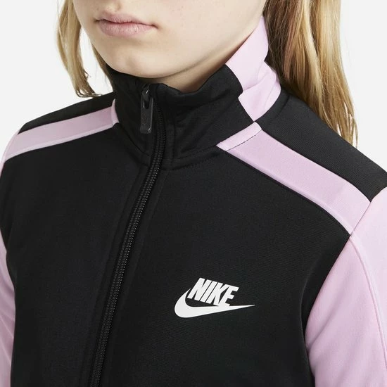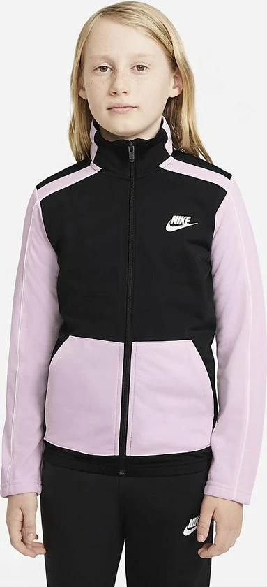 De Nike Sportswear trainingspak voor kinderen. Dit trainingspak brengt de old-school style terug in een fit. Beide de jas en broek zijn zacht en zitten comfortabel. Gemaakt van 100% polyester.