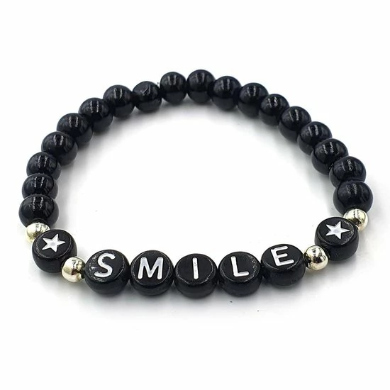 Uitgang π No Evil Naamarmbandje Voor Jongen Met Eigen Naam Zwarte Glaskralen π