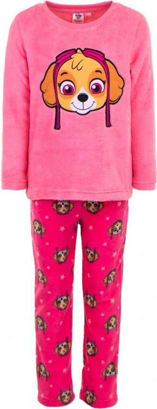 Heerlijke fleece pyjama van Paw Patrol. Degelijke kwaliteit. De kleur van de trui is lichtroze, de broek is donkerroze. Opdruk op zowel de voorkant van de trui als op de gehele bijpassende broek.