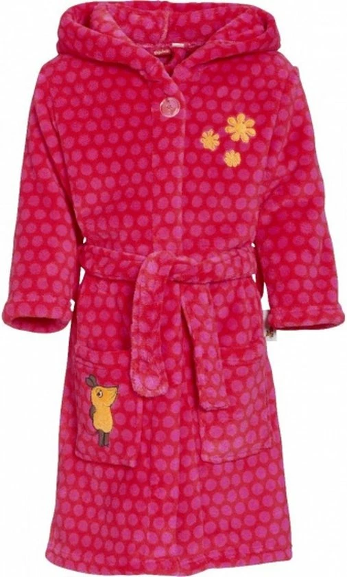Deze leuke rood-roze kinderbadjas van Playshoes is gemaakt van heerlijk zachte fleecestof. Perfect om kinderen mee warm te houden. Handig als de pyjama ’s ochtends vroeg nog even aan is. Of juist ’s avonds voor het slapengaan. Zo kan jouw kindje alvast lekker opwarmen in een zachte badjas voordat er ingestopt wordt. En met zo’n mooie stippenprint met bloemetjes en het vriendje Muis vindt jouw kleine het vast niet erg om de badjas aan te doen!