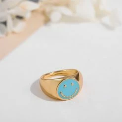 Kopen ❤️ Goldenspot Ring Smiley – Blauw – Smiley – Goudkleurig 🛒
