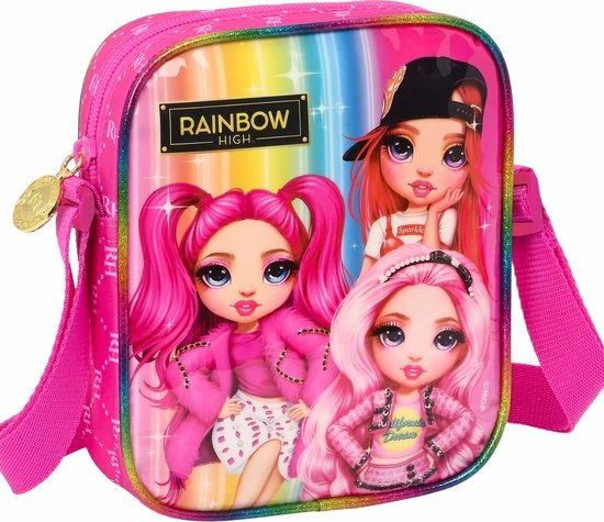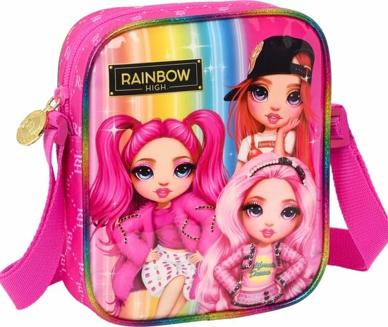 Rainbow High Mini Schoudertas, Pink. Een leuk, klein schoudertasje van Rainbow High. Dit mooie, roze tasje is ideaal voor een dagje weg of als extra tasje op school. De leuke afbeelding van de fashionista’s van deze leuke school, maken dit tasje helemaal af. Beschikt over één vak en een verstelbare schouderband en een naamlabel op de achterkant. Een geweldig leuk cadeau voor een fan van Rainbow High voor een verjaardag of de feestdagen.