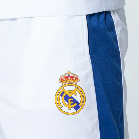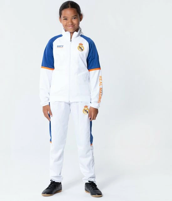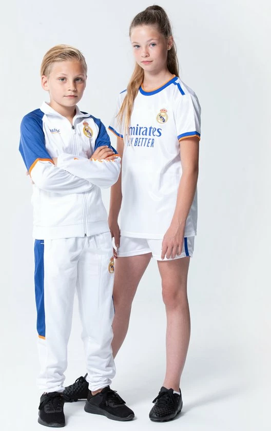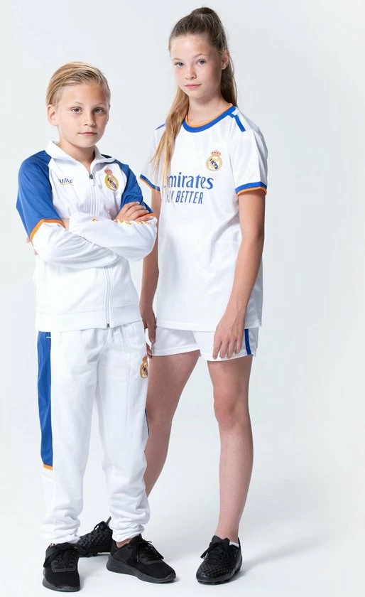 Real Madrid trainingspak voor kinderen Hala Madrid! Droomt jouw zoon of dochter ook van spelen voor De Koninklijke? Dan is dit Real Madrid trainingspak kids voor het seizoen 2021/2022 helemaal de juiste keuze. Met dit Real trainingspak wanen ze zich voor even Karim Benzema, Luka Modric of Vinicius Jr. Het pak is onderdeel van de officiële fanmerchandise van Real Madrid en is gemaakt van 100% polyester. Wat dit betekent? Dat je kunt vertrouwen op een comfortabel pak, dat goed ademt en bovendien makkelijk schoon te maken is. Perfect om in te spelen, sporten of chillen. Check snel of de juiste maat nog op voorraad is! Kenmerken * OFFICIEEL TRAININGSPAK: Dit Real Madrid trainingspak kids is onderdeel van de officiële fancollectie van Real Madrid. * BETAALBARE PRIJS: Voetbalfanshop werkt nauw samen met clubs en leveranciers. Dat betekent de beste kwaliteit tegen de scherpste prijs. * HERKENBAAR DESIGN: Het maagdelijk wit en ondersteunende kleur blauw laat direct zien welke club jij support! * COMFORTABEL: Het Real Madrid trainingspak is van 100% polyester. Dat maakt het perfect voor sport, spel én chillen. Dromen van Santiago Bernabeu Laten we eerlijk zijn: iedere voetbalfan droomt ervan om ooit in een kolkend Santiago Bernabeu op het veld te staan. Om vervolgens om je heen te kijken en te worden toegezongen door duizenden madridistas. Terwijl de negentigste minuut aanbreekt en de stand nog steeds 0-0 is, steekt Toni Kroos de bal scherp tussen de verdediging door, jij komt vrij voor de keeper. Je kijkt, mikt en stift de bal tergend traag over de uitgestoken arm van de doelman. Het net bolt, het stadion ontploft, jij bent de matchwinner. Wij dromen het nog dagelijks in ieder geval. Helaas kunnen we voetbaltalent niet cadeau doen, maar we kunnen jouw Real Madrid fan wel een beetje dichterbij brengen. Met het Real Madrid trainingspak kids wanen ze zich heel even speler van Los Blancos. Check de juiste maat in onze webshop! Meer Real Madrid artikelen kopen? Ben je op zoek naar meer Real Madrid producten? Of zoek je iets anders dan het Real Madrid trainingspak kids? Je bent bij Voetbalfanshop op de juiste plek. Ontdek bijvoorbeeld onze Real Madrid tenues (https://www.voetbalfanshop.nl/goedkope-voetbaltenues-kinderen/real-madrid-voetbaltenues/), scoor een voetbalshirt (https://www.voetbalfanshop.nl/goedkope-voetbalshirts/real-madrid-shop/) of bekijk onze Real Madrid voetballen (https://www.voetbalfanshop.nl/voetballen/real-madrid-voetballen/). Wij hebben alles voor de echte Real-fans!
