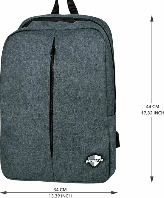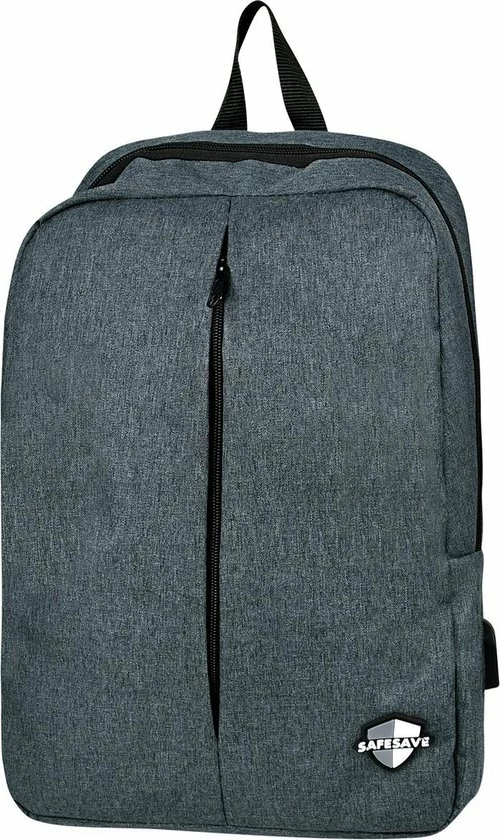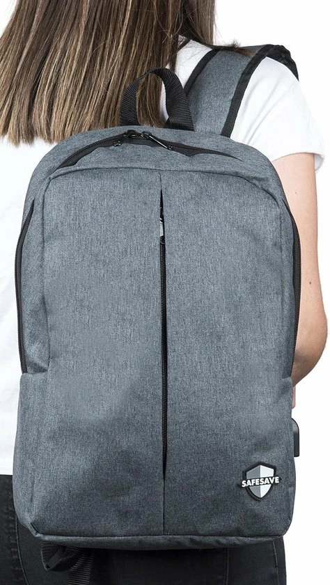 Functionele rugtas in strak design van het merk SafeSave. Op zoek naar een functionele rugtas van goede kwaliteit? Deze tas van SafeSave is dankzij de hoogwaardige kwaliteit en functionele vormgeving uitermate geschikt als schooltas, reistas of voor het werk. De tas heeft twee compartimenten, ideaal voor laptop en schoolboeken of andere documenten. De tas beschikt tevens over een USB ingang.