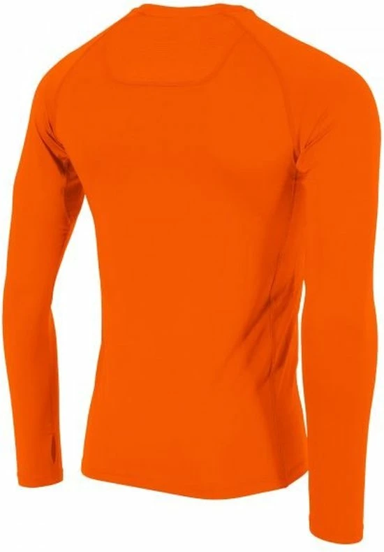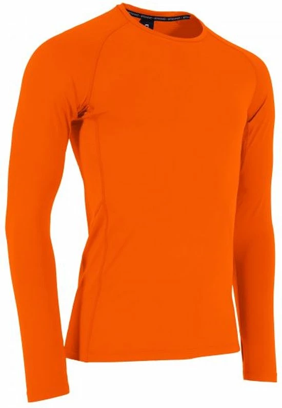 Core Baselayer Long Sleeve Shirt van Stanno in de kleur oranje, geschikt voor heren. Als jij met je team op het veld staat, is het fijn om het warm te hebben. Dit zweetafvoerende Stanno shirt zorgt voor een comfortabel en droog gevoel. Bij de nek en oksels zitten meshpanelen voor extra ventilatie. Het shirt sluit nauw aan en is voorzien van veel stretch zodat je alle bewegingsvrijheid hebt die nodig is om te kunnen scoren. De platte stiksels zorgen voor comfort. Daarnaast heeft dit shirt duimsgaten zodat het mooi op zijn plek blijft.