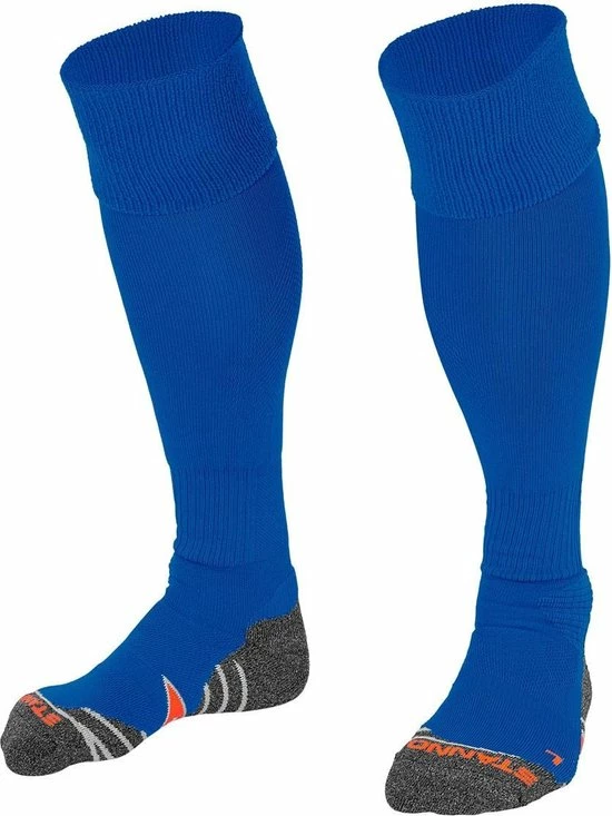 Uni Sock II van Stanno in de kleur blauw, geschikt voor heren. Deze hoge kousen van Stanno zijn gemaakt van βhighly stretchedβ polyester, voor de beste pasvorm. Op het scheenbeen is de Uni Sock II extra rekbaar, zodat de scheenbeschermer eenvoudig geplaatst kan worden. Voor optimaal ademend vermogen is de sok op de kuit voorzien van een mesh-inzet. Rondom de enkel heeft de sok een beschermende impact zone. En ter voorkoming van schuren en dus blaren is de sok voorzien een platte zoom en van een versterkte hiel, zool en teen. Dankzij de dubbele elastische boord blijft de kous goed op de plaats. Deze anatomische gevormde sok is voorzien van een links/rechts-indicatie.