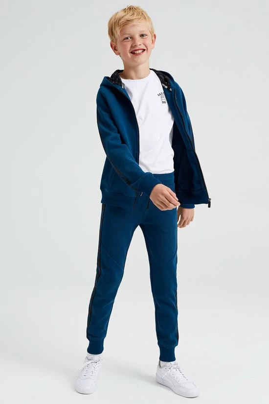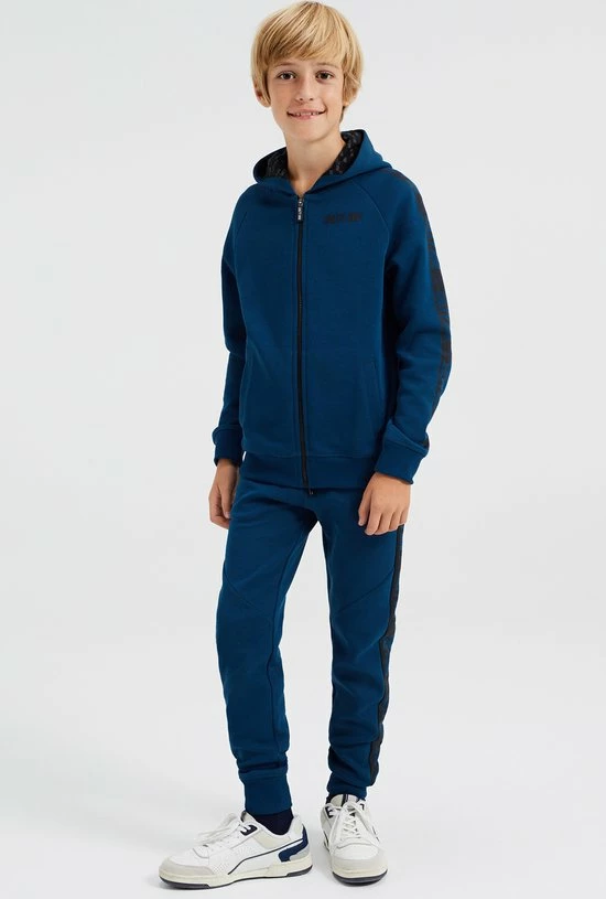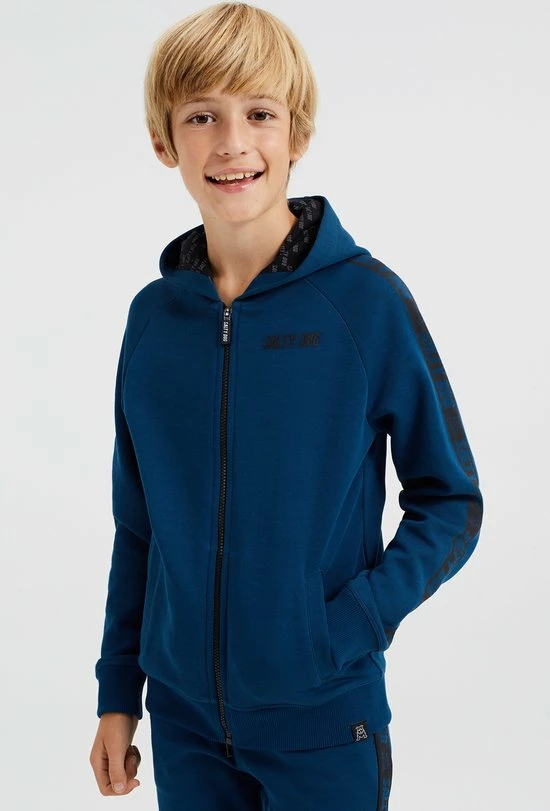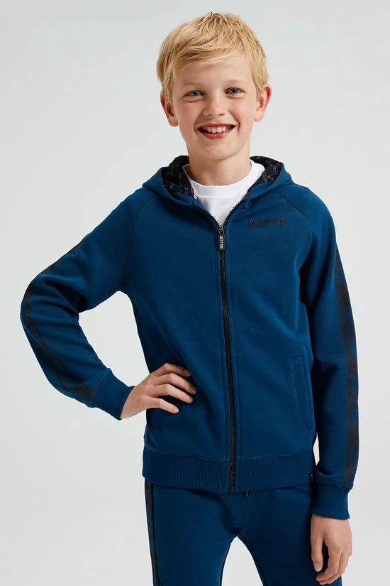 Promo 🧨 WE Fashion Jongens Sweatvest Met Capuchon En Tapedetails – Donkerblauw – Maat 170/176 ✨