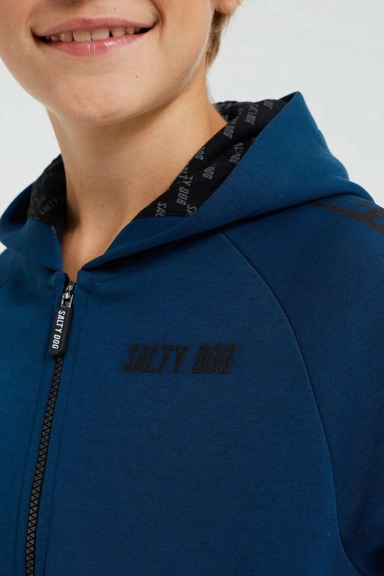 Een regular fit sweatvest van een katoenmix met een capuchon met een voering van Salty Dog print. Het model heeft lange mouwen met tapedetails, een ritssluiting en twee steekzakken.
