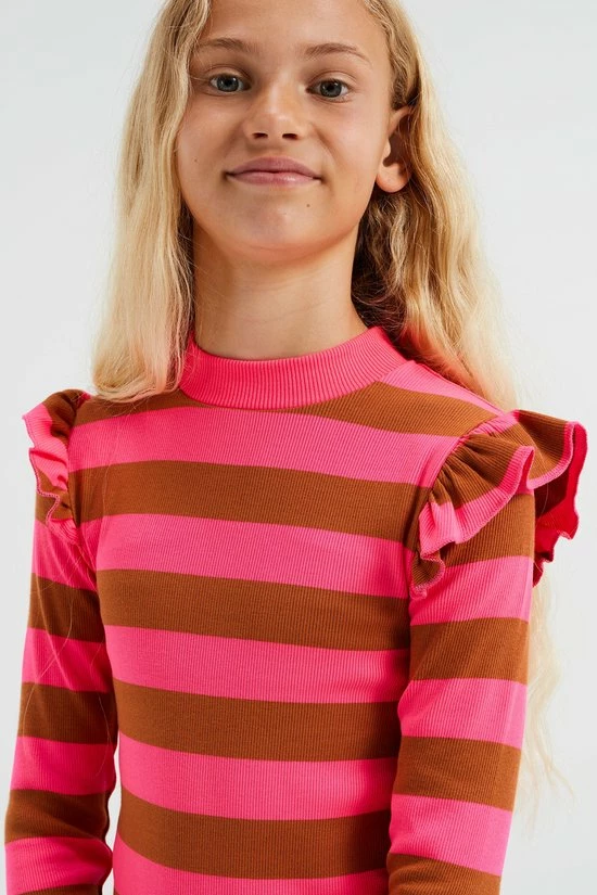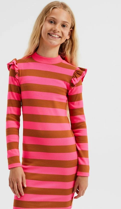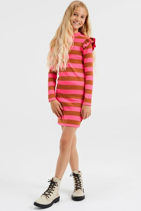 Nieuw π WE Fashion Meisjes Gestreepte Jurk Met Volants – Maat 122/128 β