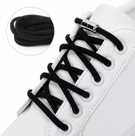 Elastische ronde veters met metalen draaisluiting. ΓΓ©n keer op maat maken voor uw schoenen en u hoeft ze niet meer te strikken.