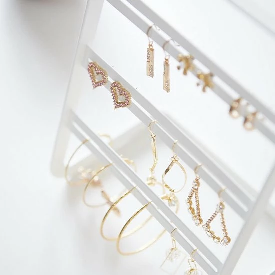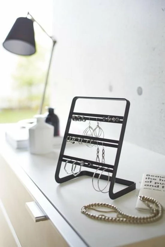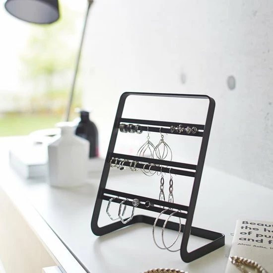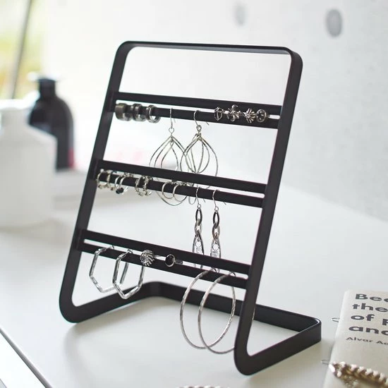 Oorringen houder zwart – Yamazaki Deze eenvoudige en mooie oorbellenhouder van Yamazaki heeft drie levels om je oorringen in verschillende vormen en maten op…